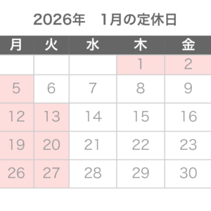 いつもveranda.へご来店いただきましてありがとうございます。 2026年1月のお休みのお知らせです。 お客様には、ご迷惑をおかけしますがよろし…