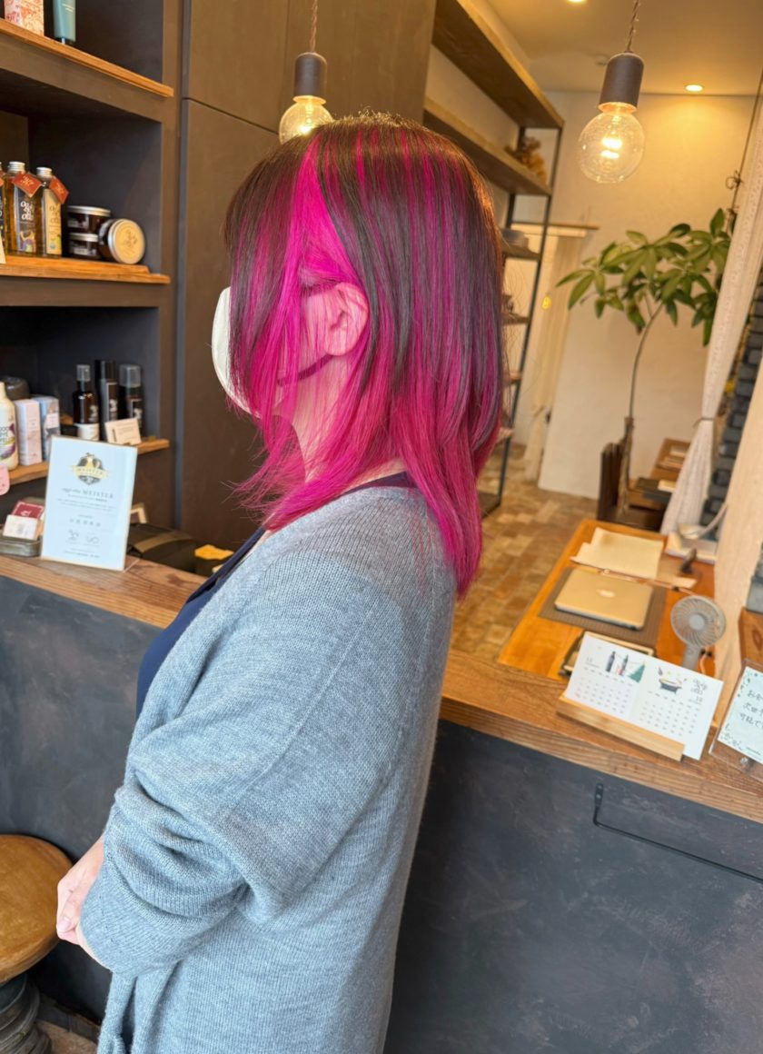 内側にビビットなキャンディピンクで可愛さを。 アンブレラカラーで個性を主張するスタイルをご案内いたしました。