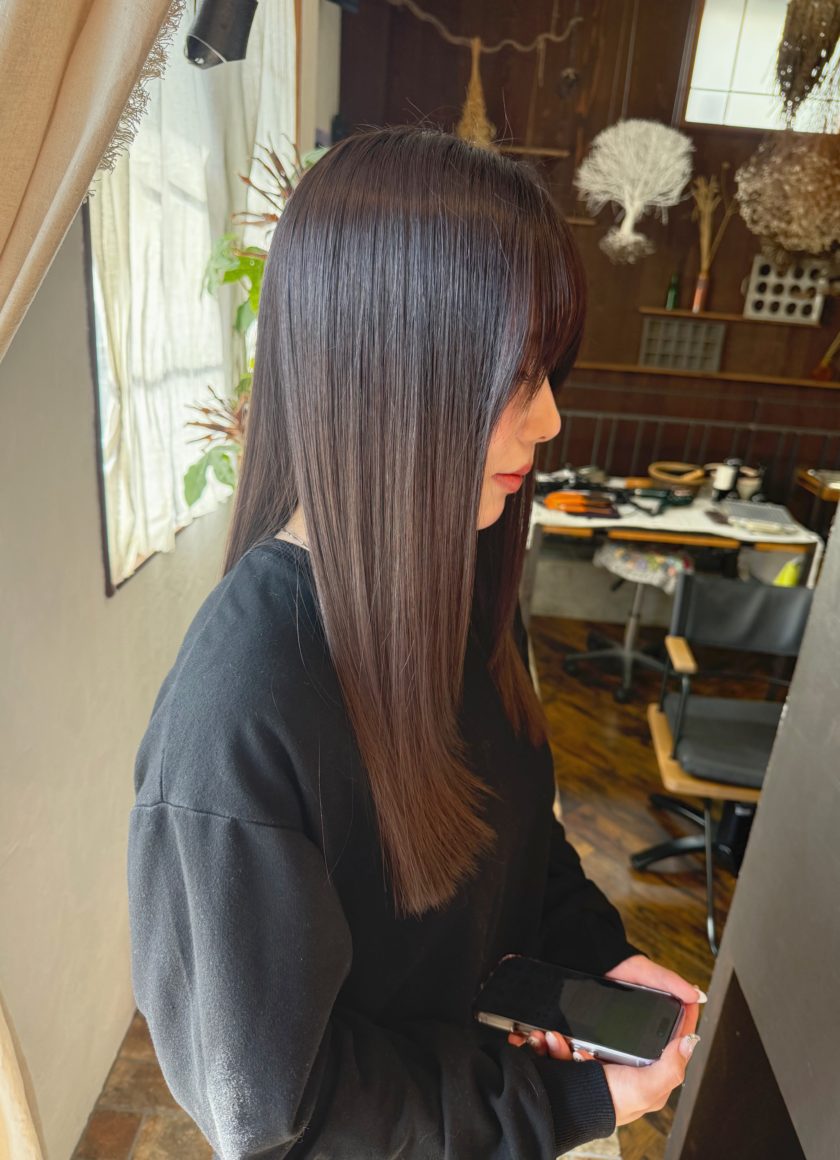 落ち着いた色味でもツヤと透明感を感じるカラーをご案内しました。